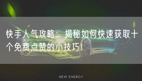 本文介绍想在快手成为网红,获取免费点赞的实用技巧,帮助你在社交媒体上快速提升影响力。2025-06-24 | 分类:快手刷点赞免费10个 | 浏览:690